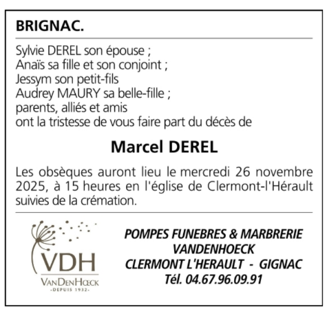 Décédé à Brignac (34800, France) le samedi 22 novembre 2025 à l'âge de 79 ans