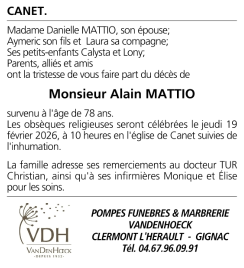 Décédé à Canet (34800, France) le mardi 17 février 2026 à l'âge de 78 ans