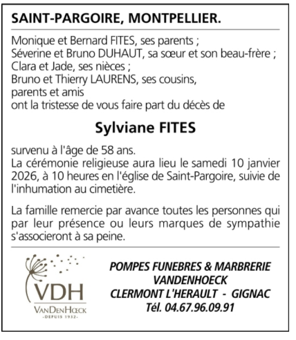 Décédée à Montpellier (34000, France) le samedi 3 janvier 2026 à l'âge de 58 ans