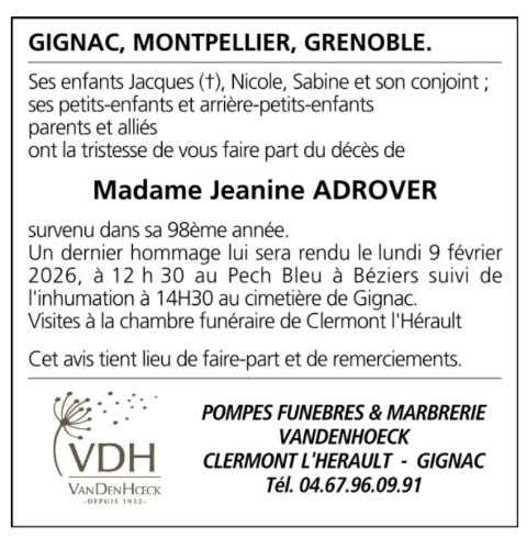 Madame Jeanne ADROVER née MORENILLAS